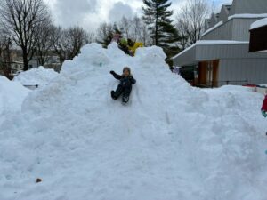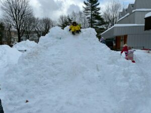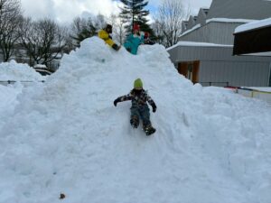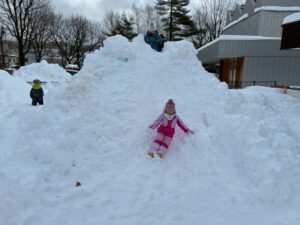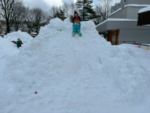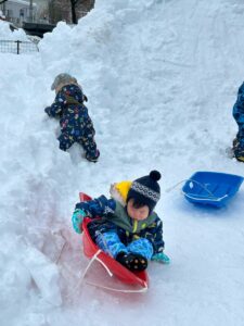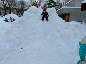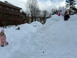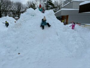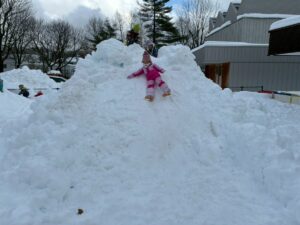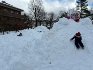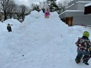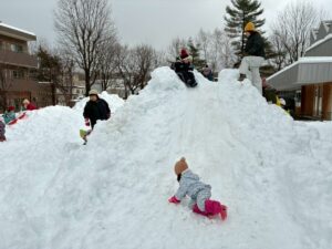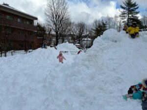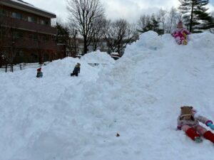 未完成の雪山ですが・・・おしりすべりを楽しみました。幼児クラスさん~