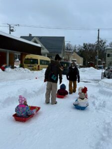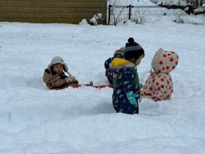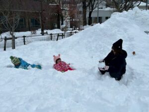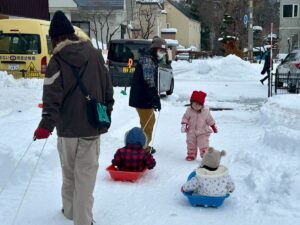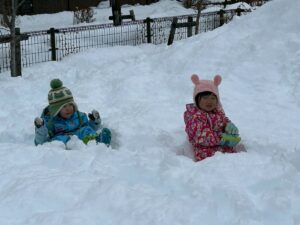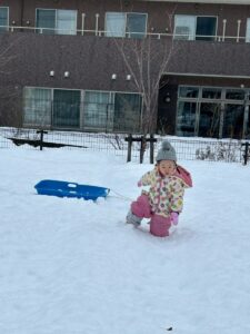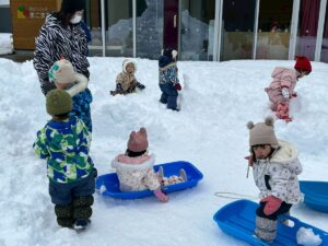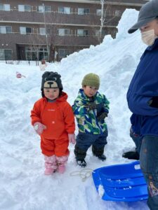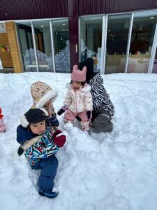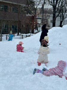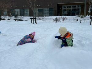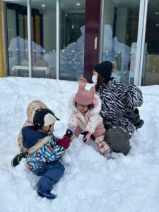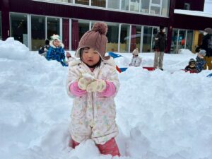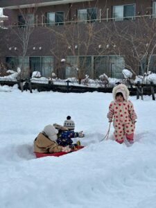 乳児さんは、雪の中でも元気いっぱい!