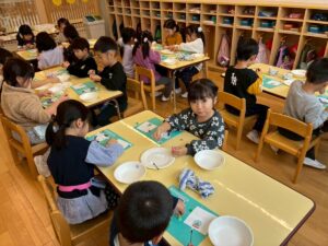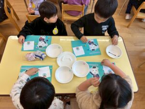 新しいお友達が増えました!一緒に給食食べようね。ともだちになろうね~とみんなからのことばのプレゼントです。