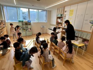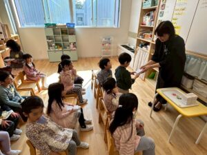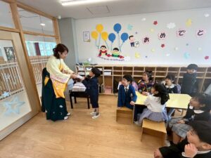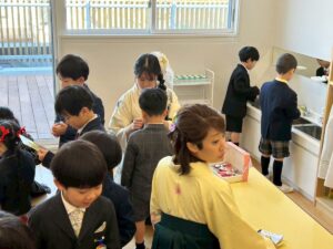 年中さんは、お餅をいただいていました。