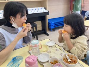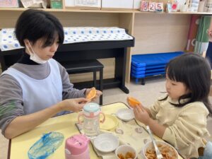はなぐみさんは、オレンジの切り方が変わったので、食べ方を教えてくださっています!
