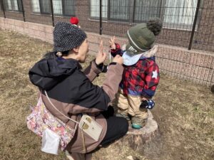 木の株は、インタビューの台になっています!