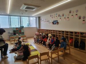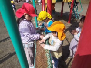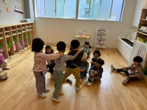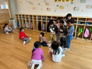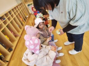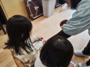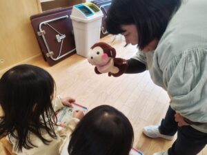 そらぐみ・・・もんすけと一緒にシールをはりました!