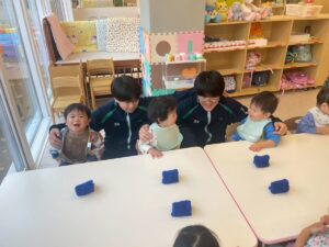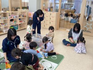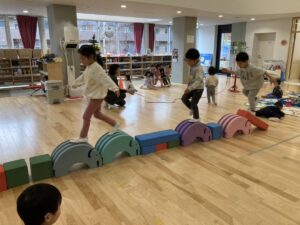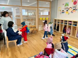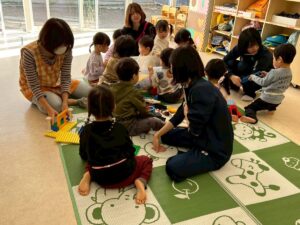 はなぐみさんは、すこしづつ幼児クラスへの階段を上っています!2階での活動もうれしそうです。