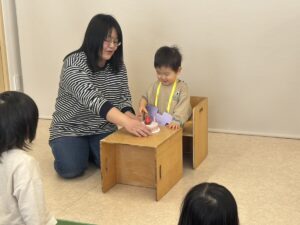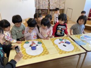 年少さんは、園でおべんとうをたべました。