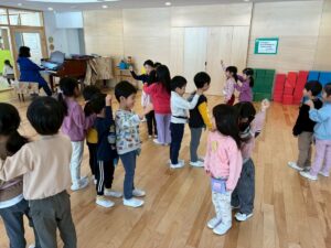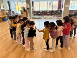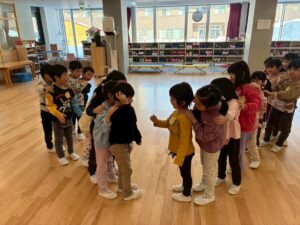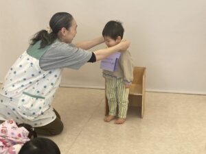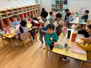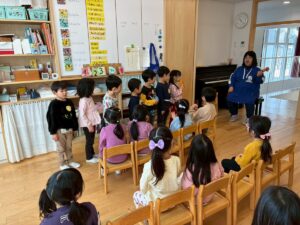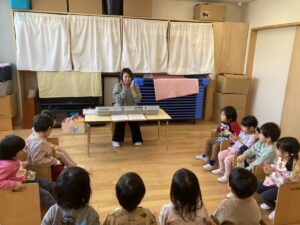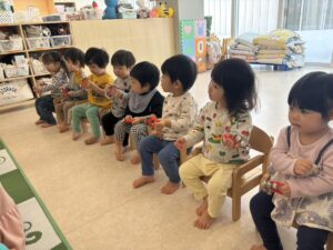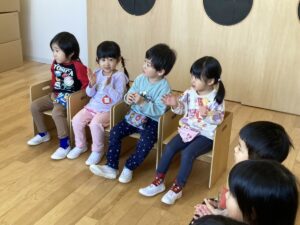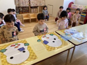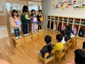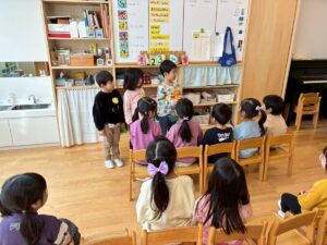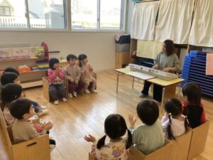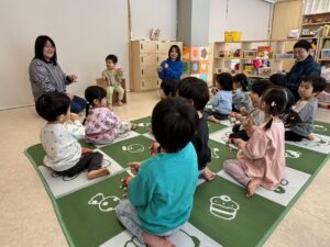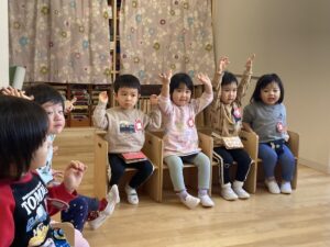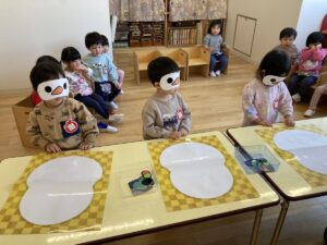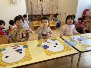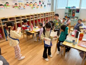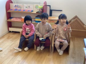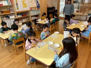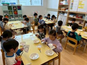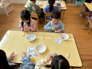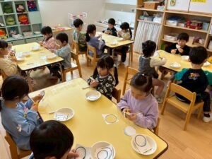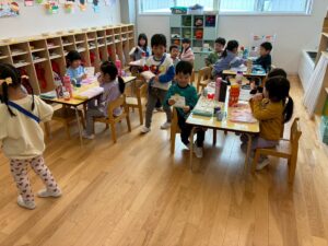 年少さんは、園でおべんとうをたべました。
