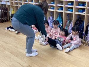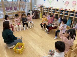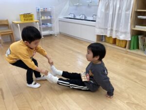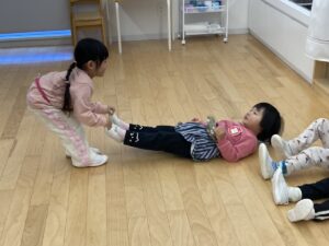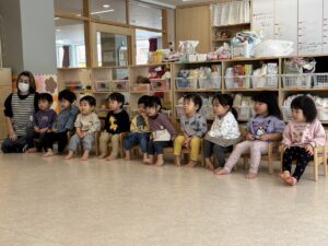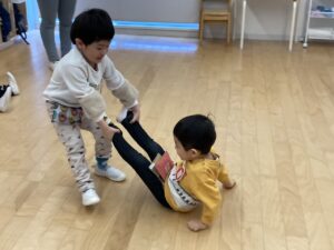 ホールがあいたので、乳児さんは、ばなな君体操~