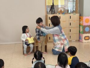 乳児クラスでもお祝い!インタビューにもこたえることができました。