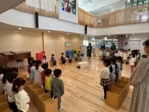 年長さんは、ページェントごっこ。どんな役があったか、思い出せるかな?