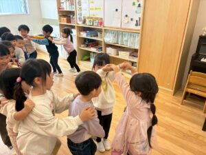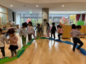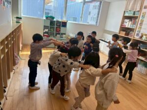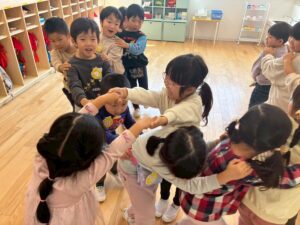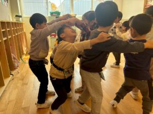 朝の自由あそびにもはなぐみさんは、仲間入り~