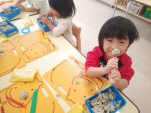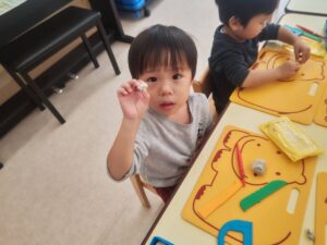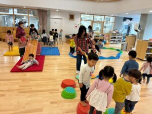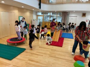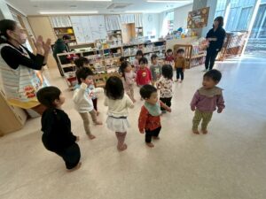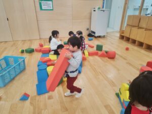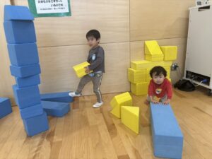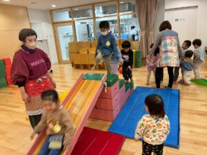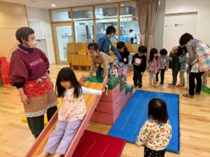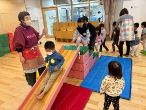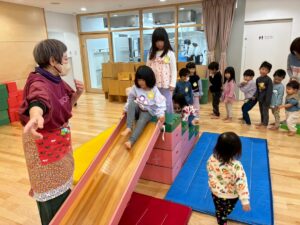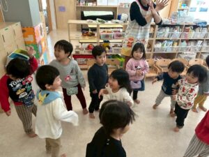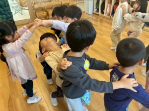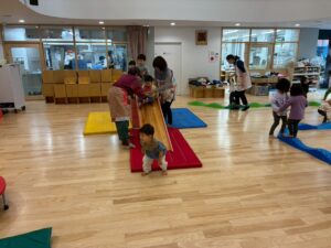 今日は、乳児さんと幼児さんと一緒にあそびました。