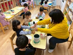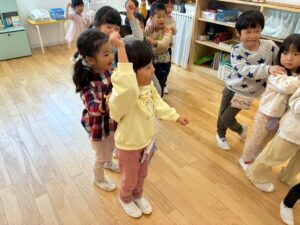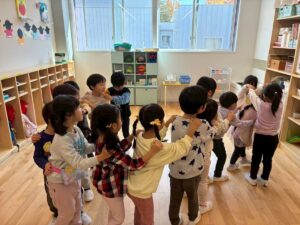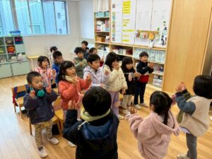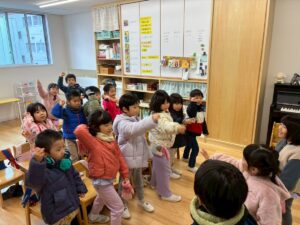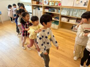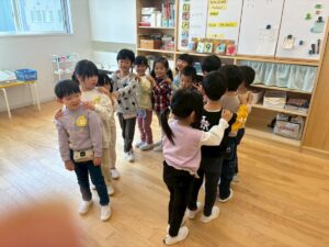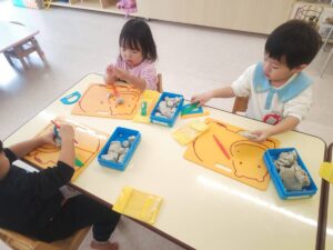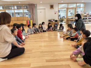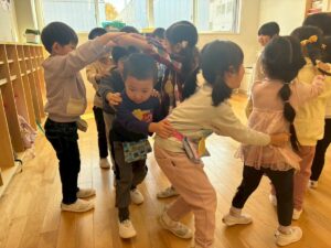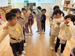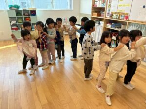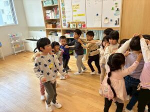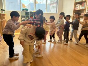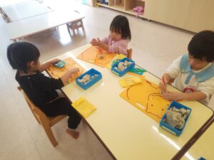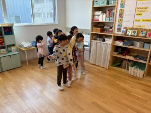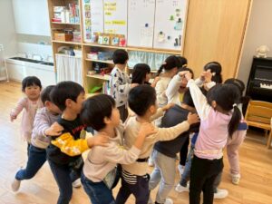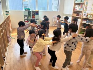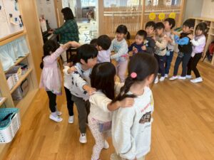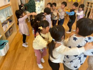 年少さんは、おりーぶ、ひつじぐみさんと一緒にあそびました。